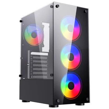 Snowman Vertical Gaming PC Case with Four-Sided Tempered Glass Transparent Panel MicroATX Full Component Showcase